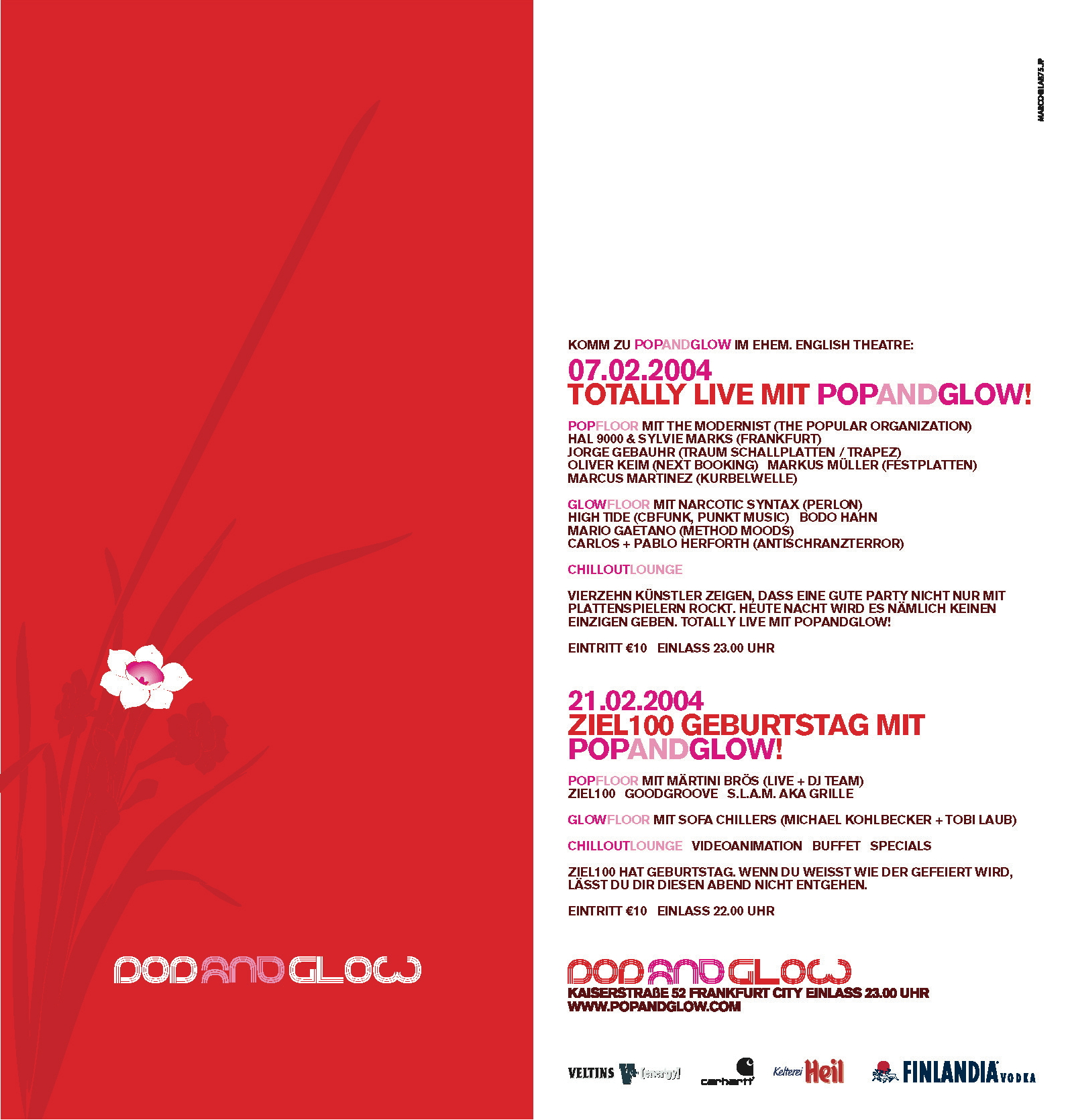 07.02.04 Pop and Glow, Frankfurt a.M. (duo live premiere, see pics above) | flyer