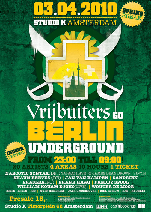 03.04.10 "Vrijbuiters Go Berlin Underground", Studio/K, Amsterdam | flyer