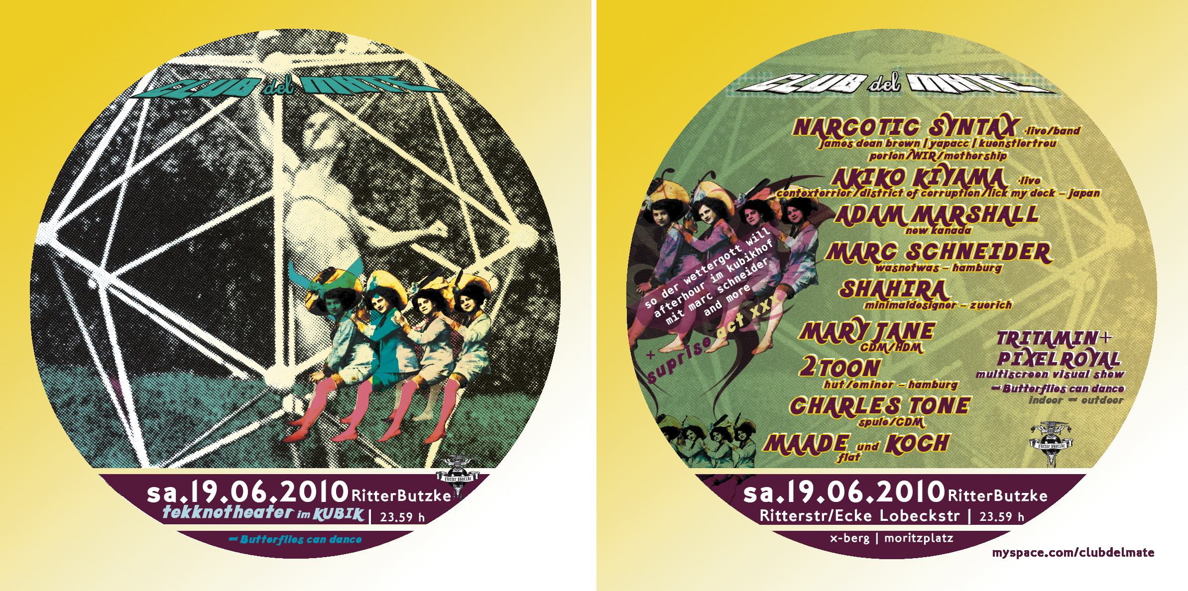 19.06.10 "Club del Mate", Ritter Butzke Kubikhof, Berlin | flyer | RA | videoclip
