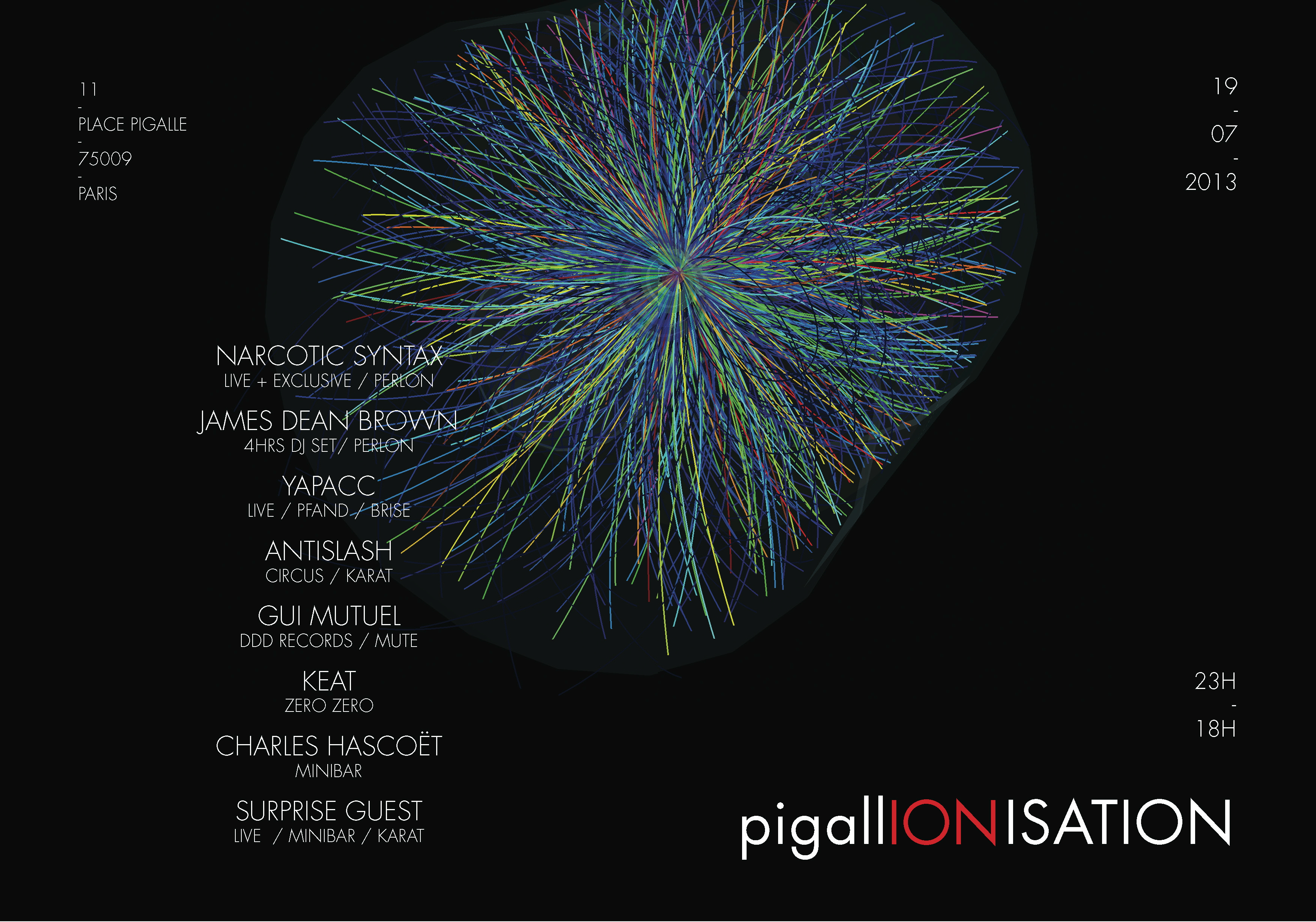 19.07.13 "pigallIONISATION", Le Pigallion, Paris | flyer | promosheet | RA | FB